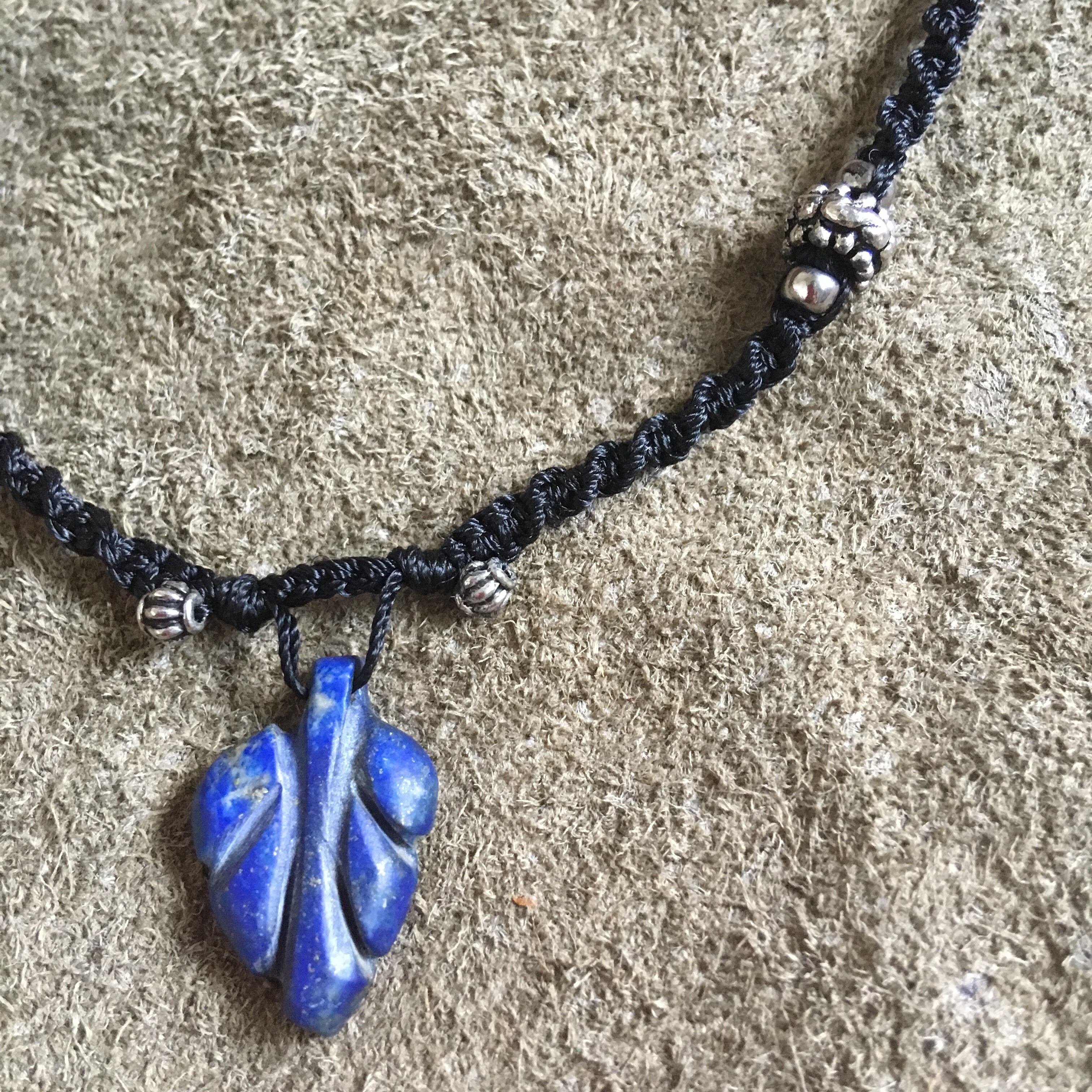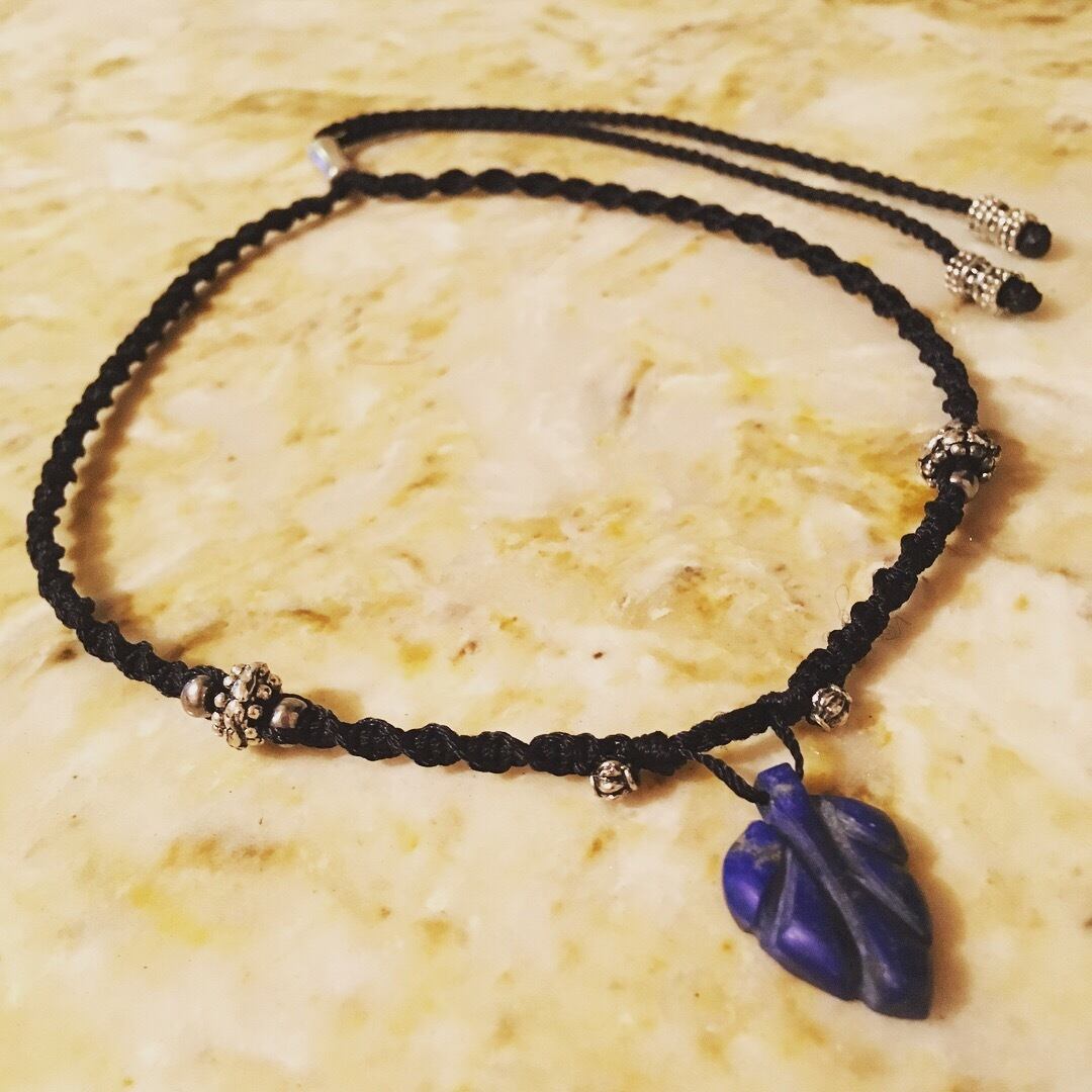 NEPALで買い付けてきたラピスラズリの葉っぱ型トップでペンダントを製作しました。