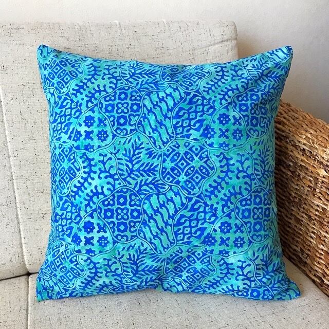 インドネシアの伝統工芸バティックの素晴らしさを知って頂けたらと、cerah*オリジナルのクッションカバーを作りました。