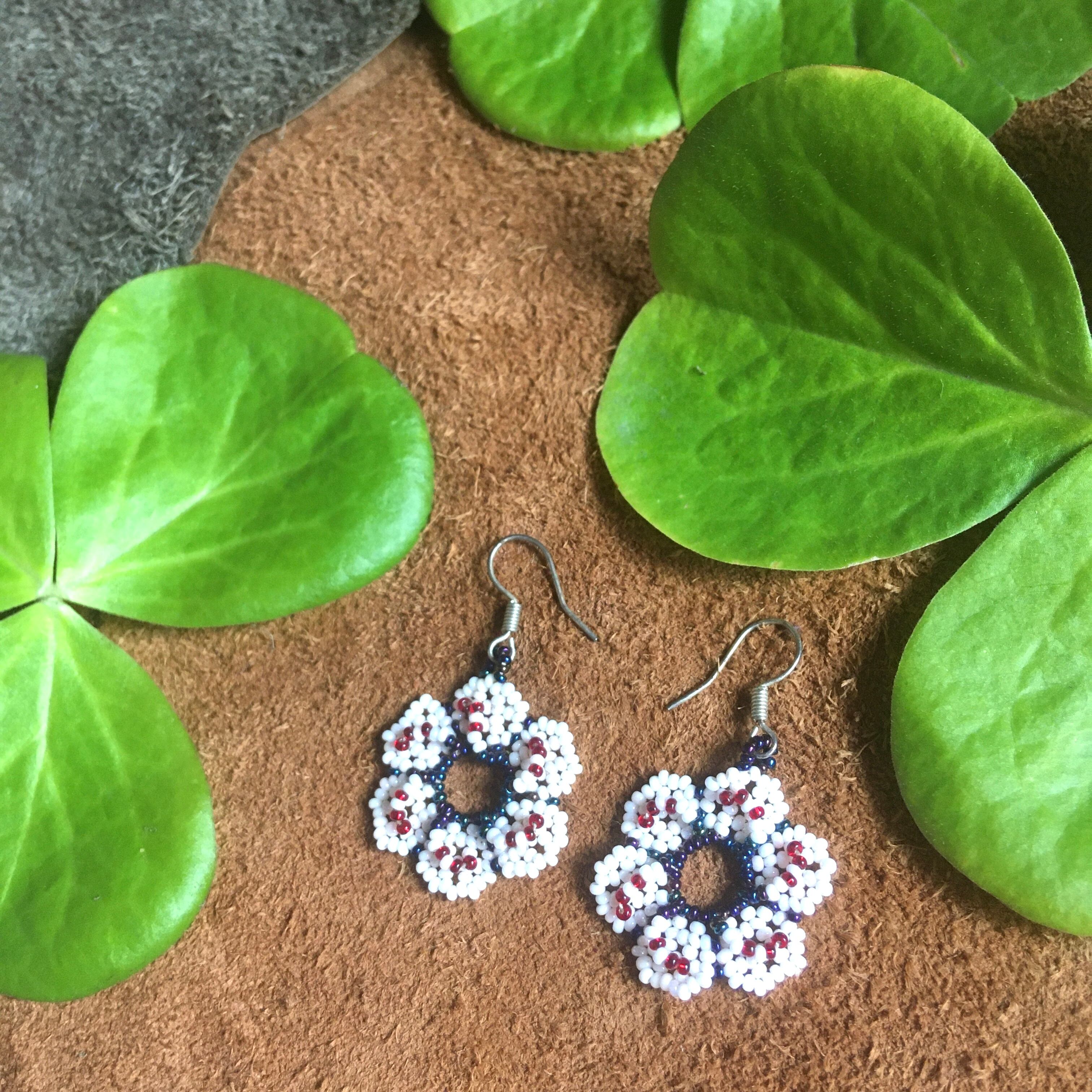 Mexicoウィチョール民族ピアス▪️white flower▪️