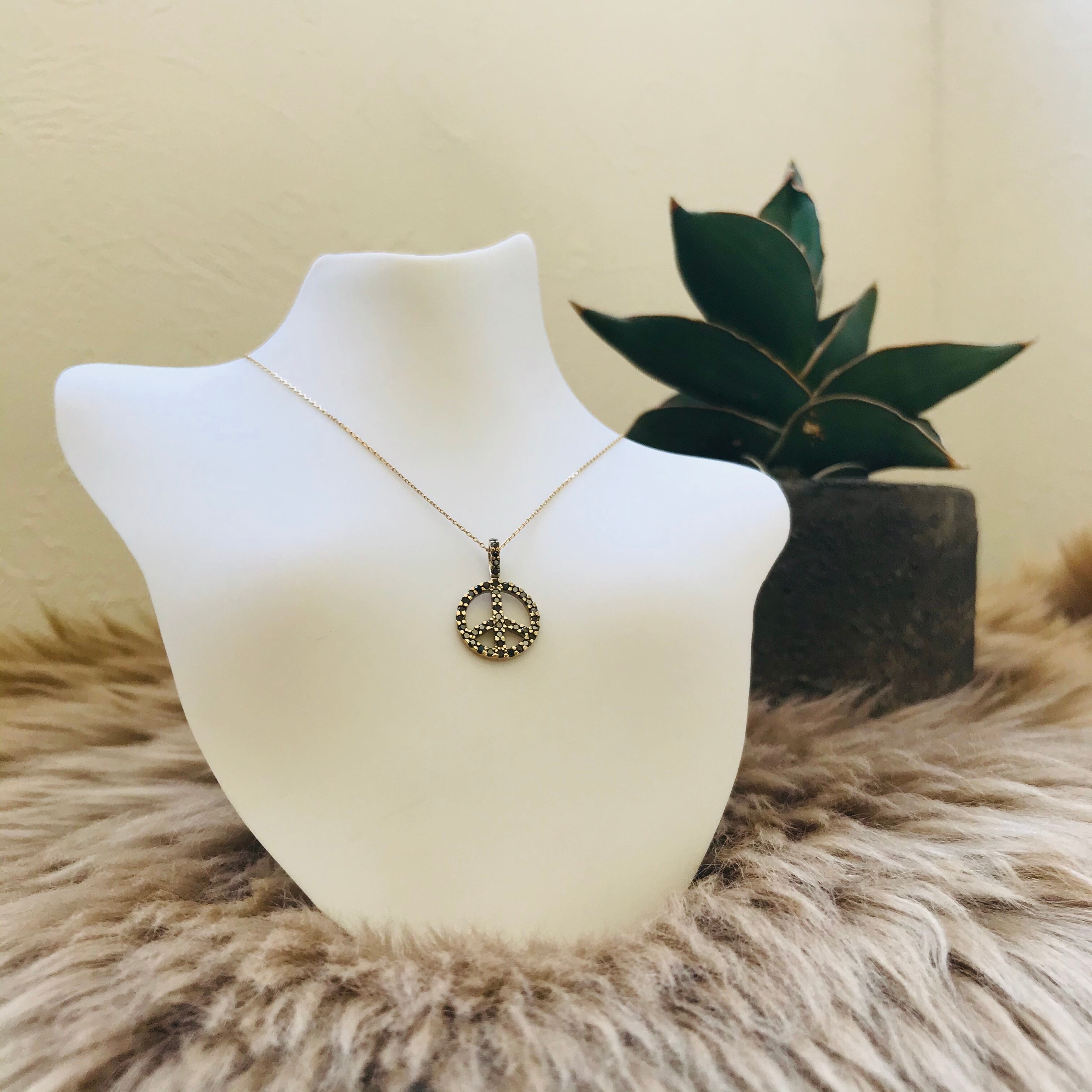 ⌘ K10 ピースマーク ブラックダイヤモンド ネックレス ⌘