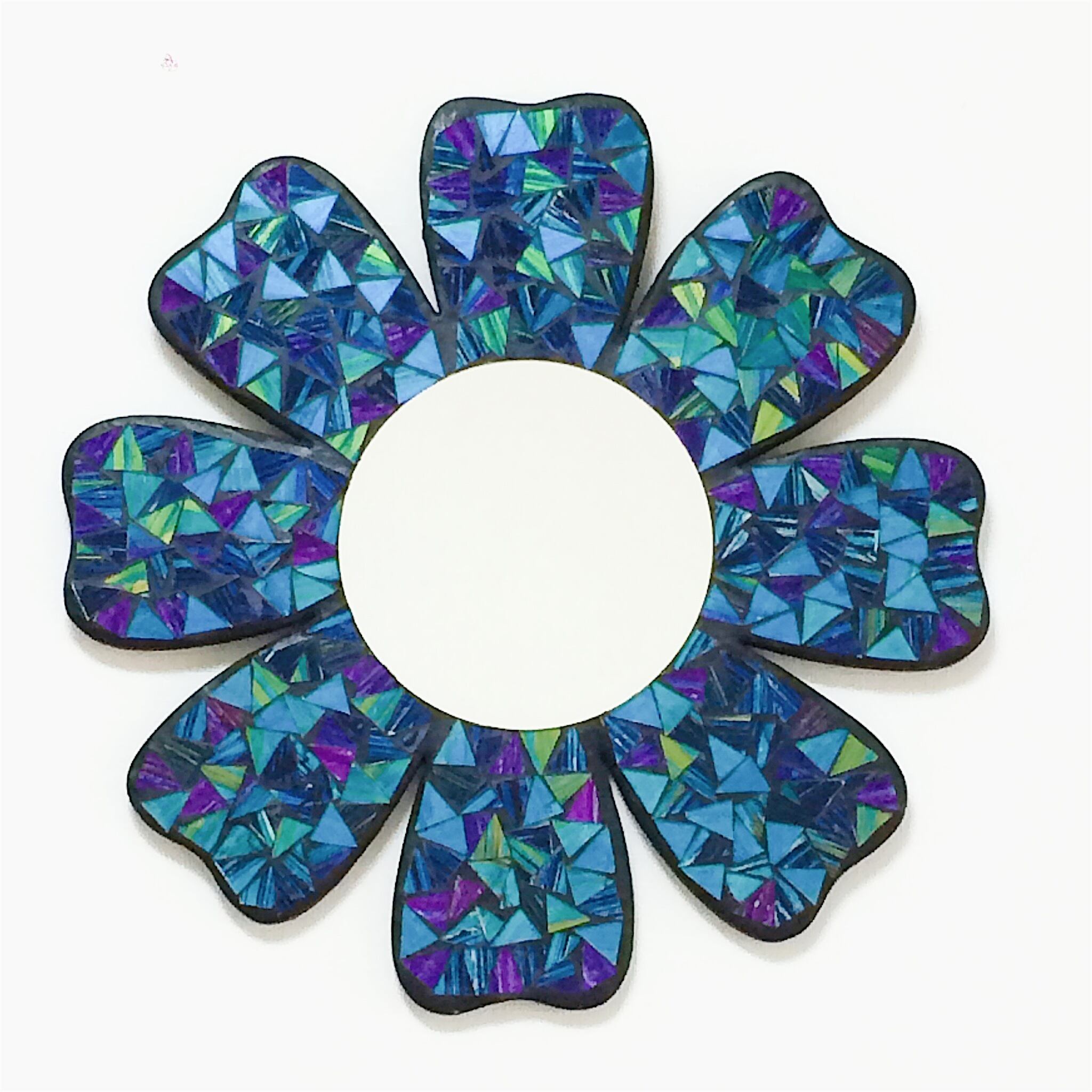 ブルー系のモザイクガラスで 鮮やかなお花をイメージしたミラーです。